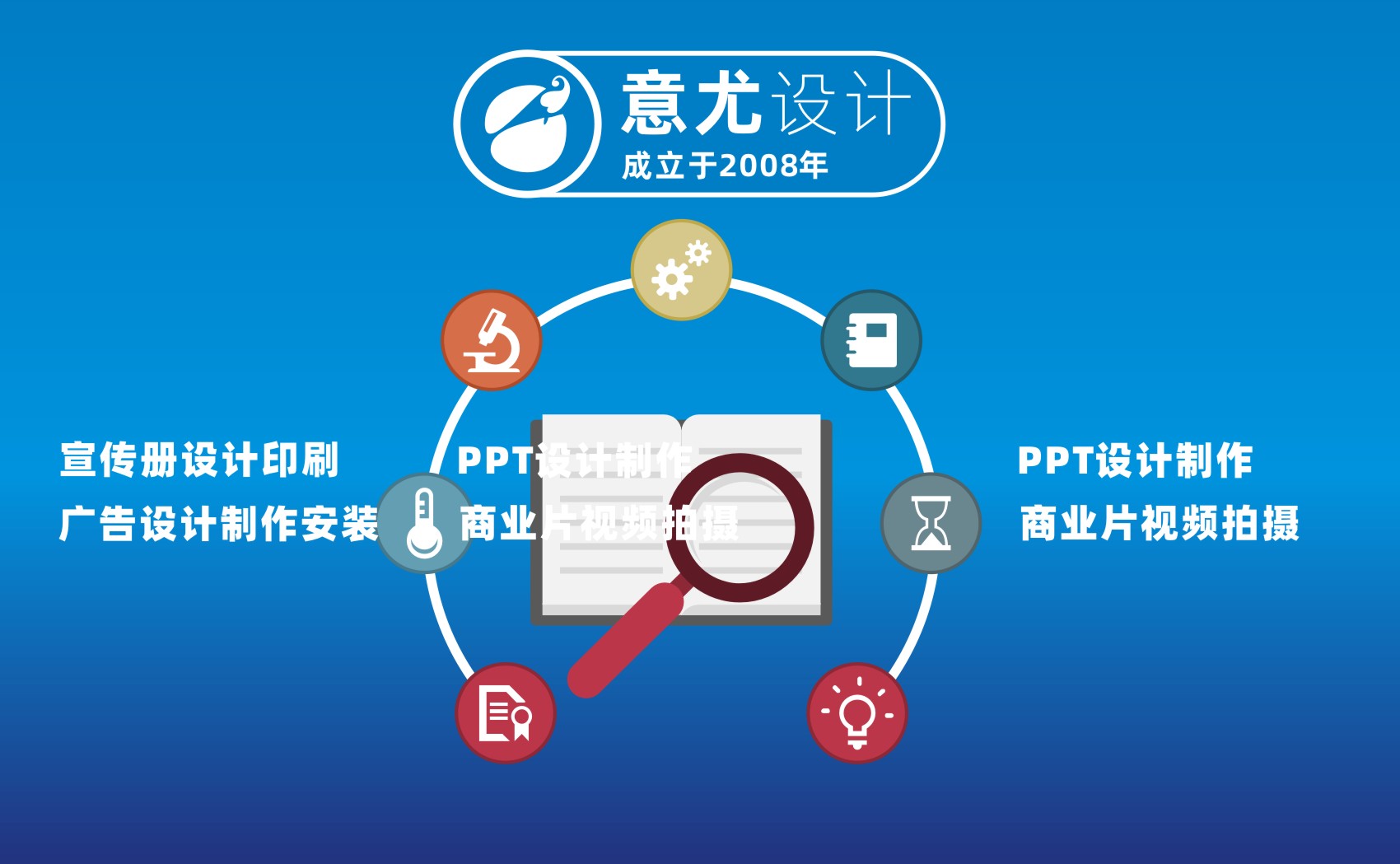蘇州意尤文化傳播有限公司是一家有著多年廣告設計經驗的蘇州知名廣告企業 主要業務有蘇州PPT設計、蘇州產品PPT設計、蘇州企業PPT設計、蘇州會議PPT設計、蘇州項目PPT設計、企業VI設計、設計印刷宣傳冊/樣本/單頁/名片等 自2007年成立以來,蘇州意尤廣告公司與蘇州及蘇州各市的幾百家中外企業進行了廣告設計合作,經過多年發展公司已形成了以企業PPT設計、企業VI設計,廣告設計,廣告印刷,樣本設計,宣傳冊設計,名片印刷,菜譜制作,單頁,宣傳單等一批特長業務,相信在各位新老客戶的關心下,本公司會得到更大的發展,同時為客戶的發展宣傳保駕護航。